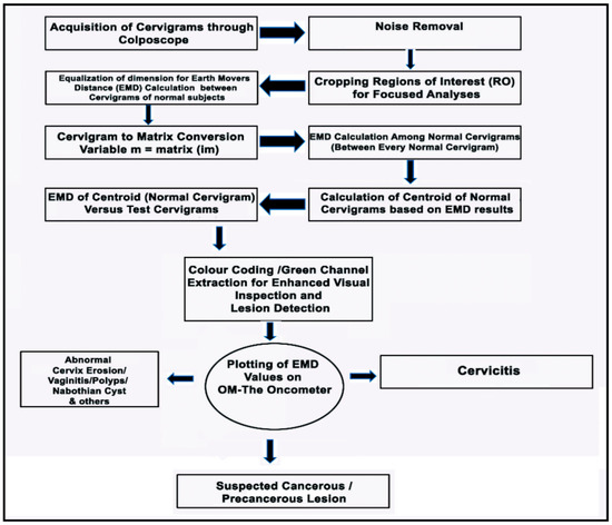 - Shrivastav, K.D.; Das, A.M.; Singh, H.; Ranjan, P.; Janardhanan, R. Classification of colposcopic cervigrams using EMD in R. In Proceedings of the International Symposium on Signal Processing and Intelligent Recognition Systems, Bangalore, India, 9–22 September 2018; pp. 298–308. [Google Scholar] [CrossRef]
