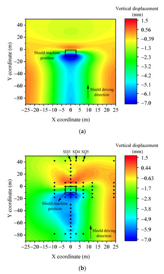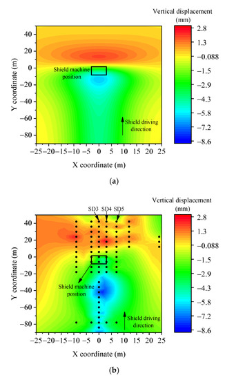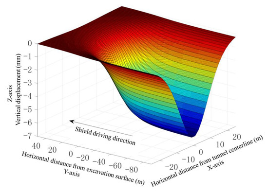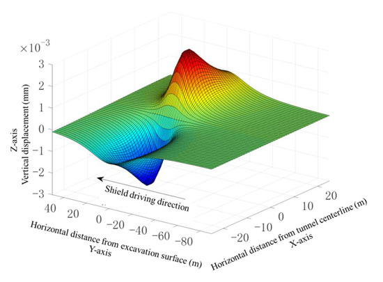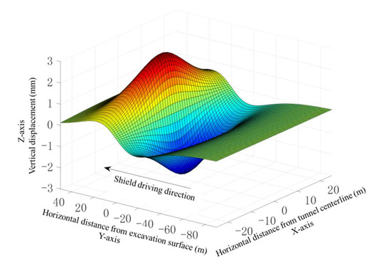 Finally, by superimposing all of the preceding components, the short-term ground deformation during shield driving can be obtained: