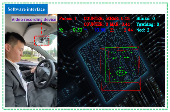 • In this study, a dataset was collected in a real driving environment with a rich set of driving scenarios including day and night, with and without glasses and male and female, which can be used for subsequent in-depth studies on fatigue driving detection. In addition, an auxiliary software is proposed to record the changes of drivers’ facial features in real time while protecting their facial privacy.