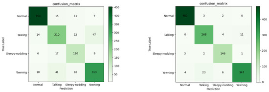 Figure 8. Confusion matrix of 3D-CNN on FDF test set (Left); confusion matrix of 3D-SE-Net on FDF test set (Right).