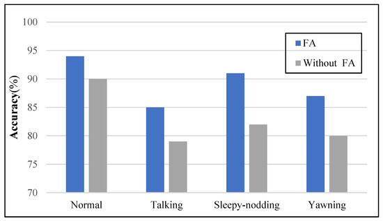 Figure 11. Comparison of the accuracy of each behavior detection with or without frame aggregation strategy on the FDF dataset.