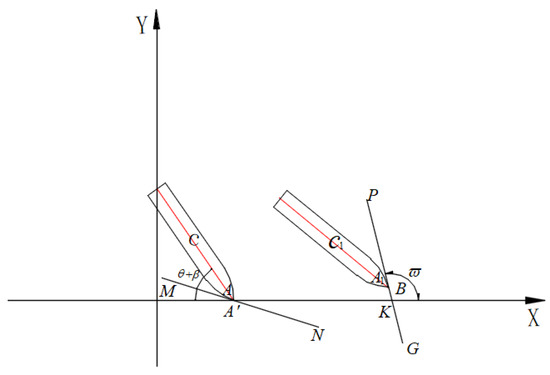 Similarly, the absolute movement trajectory of the vertex in the ricochet process can be obtained. Moreover, the corresponding impacting point can be analytically determined when the two trajectories intersect each other.