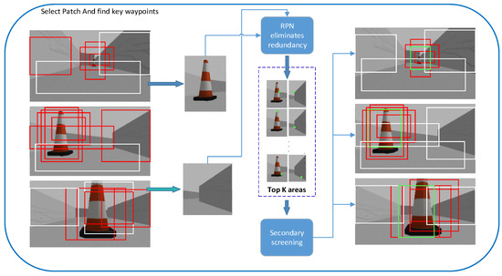 Although we can obtain the initial positioning frame of the multi-category feature points according to the cumulative gradient heat map, the key pixels will change when we update the robot state. Therefore, we propose an adaptive method to solve these problems, that is, we add correction patches to the image according to the current gradient in each Nk iteration. In this way, we can find the influence of the current detected waypoints on the planning effect and realize the directional deletion of the waypoints by arranging obstacles.