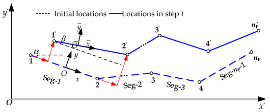 The configuration of the proposed element is shown in Figure 5, in which np nodes and np-1 segments were defined. The element displacement vector Ut is defined in Equation (16), in which was the displacement of node i at step t.