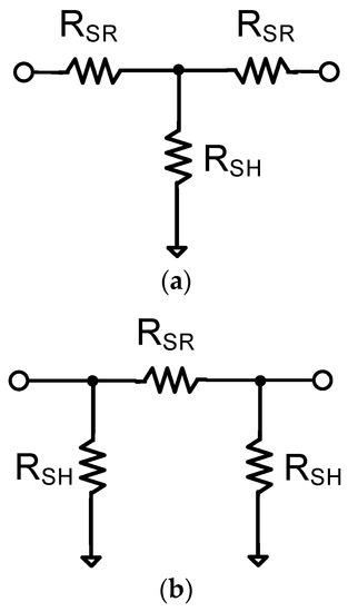 Schematic of (a) the T-type attenuator and (b) the π-type attenuator.