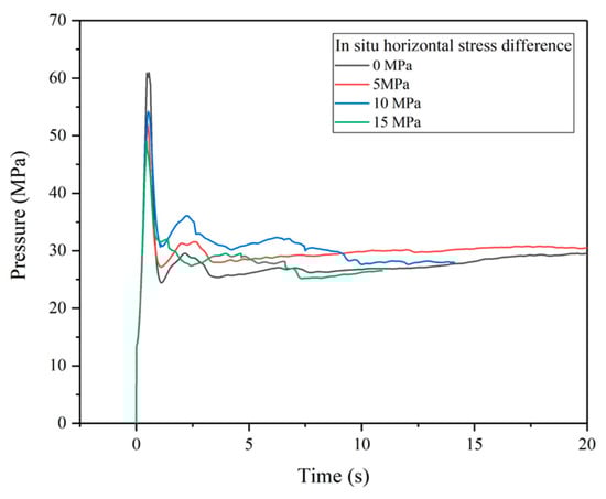 Figure 20. The bottom hole pressure under different in situ horizontal stresses.