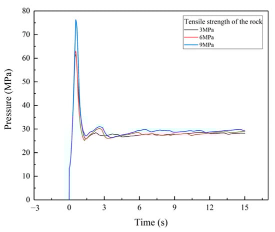 Figure 21. The bottom hole pressure under different tensile strengths of rock.