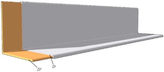 Figure 17 shows the cross-section of the corroded angle. D represents the initial section thickness; D’ represents the residual depth of corrosion. Based on the prediction results of Figure 8, the corrosion depth of carbon steel under the I–M atmospheric environment for 30, 60 and 90 years of corrosion can be calculated. By subtracting the corrosion depth value from the initial section thickness D of each angle member, the residual corrosion depth D’ of the angle sections can be obtained, as shown in Table 3. By integrating D’ into ANSYS, finite element models of the steel transmission tower under 30/60/90 corrosion years were finally established.