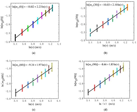 The relationship between and the basic wind speed v generally obeys the power exponential relationship [10], and its logarithmic expression is:
