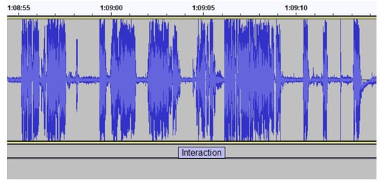 Interaction: In Figure 5, and its corresponding transcription in Table 4, we can observe that this audio sample interleaves segments of short silences with segments of the teacher’s speech, usually indicating that the lecturer is conversing with a student.