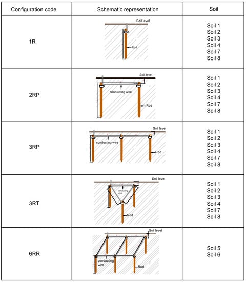 - Sinchi, F.M.; Quizhpi, F.A.; Guillén, H.P.; Quinde, S.N. Soil Treatment to Reduce Grounding Resistance by Applying Low-Resistivity Material (LRM) and Chemical Ground Electrode in Different Grounding Systems Configurations. In Proceedings of the 2018 IEEE International Autumn Meeting on Power, Electronics and Computing (ROPEC), Ixtapa, Mexico, 14–16 November 2018; pp. 1–6. [Google Scholar]