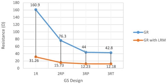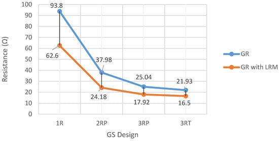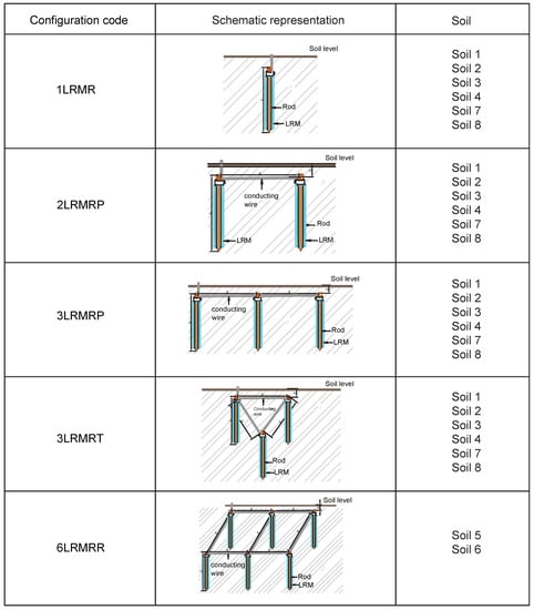 Soil Treatment to Reduce Grounding Resistance by Applying Low-Resistivity Material (LRM) Implemented in Different Grounding Systems Configurations and in Soils with Different Resistivities
