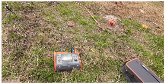 - Reffin, M.S.; Nor, N.M.; Abdullah, S.; Ahmad, N.; Othman, M. Impulse Characteristics of Earth Electrodes in Different Soil Resistivity by Field Measurements. In Proceedings of the 2018 IEEE PES Asia-Pacific Power and Energy Engineering Conference (APPEEC), Kota Kinabalu, Malaysia, 7–10 October 2018; pp. 331–334. [Google Scholar] [CrossRef]