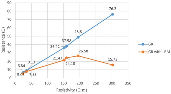 5.1. LRM Effects on Soils with Different Resistivity Values