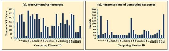In the future, a multi-objective-based resource profiling approach will undoubtedly increase VOs’ resource utilizations and enable user applications to complete their tasks on time since this technique incorporates many CE performance metrics, including available computing capacity, response time, waiting time, task failure rate, and task resubmission rate, and others. In this regard, fuzzy logic may be advantageous since it is capable of making judgments in an uncertain environment and providing multi-objective solutions [42,43,44]. This study can also point to some new areas to investigate such as developing a novel scheduling method for a resource-shared environment based on resource performance modeling. Finally, we plan to conduct larger-scale mircobenchmark experiments that can consist of millions of tasks and also apply our proposed schemes for real MTC applications (such as drug discovery simulations [45]) in order to further verify the effectiveness of our proposed mechanisms in a real scientific computing environment.