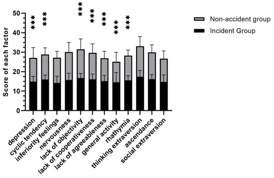 Comparison of the scores of each factor of the Y-G personality scale between drivers in the accident group and non-accident group. Note: *** p < 0.001.
