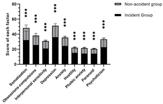Comparison of the scores of each factor of the SCL-90 scale between drivers in the accident group and non-accident group. Note: *** p < 0.001.