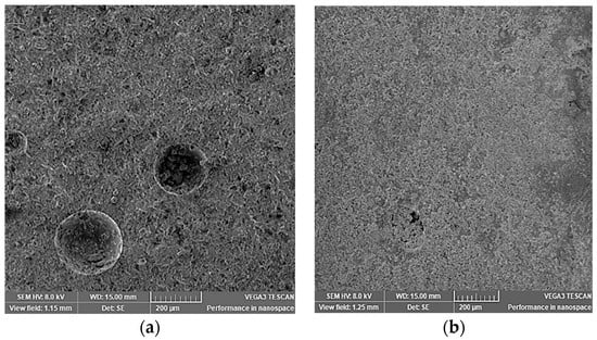 SEM images of (a) CP and (b) CP10VSW samples surface topography.