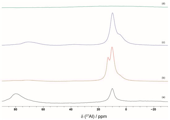 27Al MAS NMR spectra of (a) CEM, (b) CP, (c) CP10VSW and (d) VSW samples.