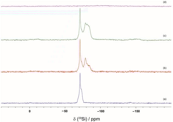 29Si MAS NMR spectra of (a) CEM, (b) CP, (c) CP10VSW and (d) VSW samples.