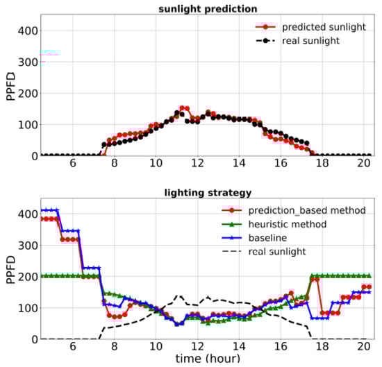 Sunlight prediction models and lighting strategies for the predictive light control systems [11]. PPFD was measured with units of µmoL m−2 s−1.
