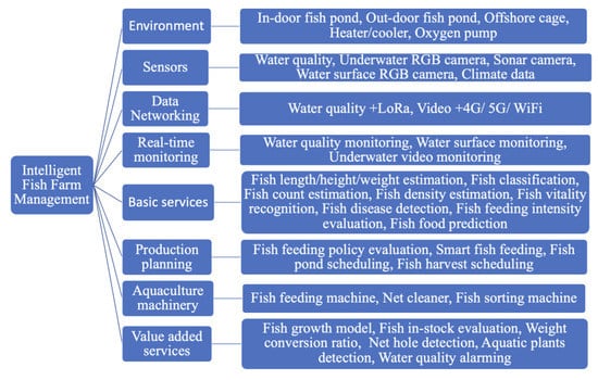 Outdoor ponds or sea cage farming can quickly fulfill these requirements compared with indoor tanks. However, in this environment, fish are exposed to natural fluctuations, which are essential factors in the production environment, e.g., water flow, temperature, salinity, and light intensity. However, with these exposures, additional challenges burden the farmers to control the production conditions because sea-based farming increases the chance of stressors such as pollutants, pathogens, and parasites in the population [1]. This study then analyzes the key requirement factors of intelligent fish farming to guide the production process and fully understand the aquaculture farm’s environmental and fish conditions.