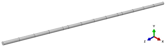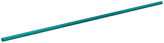 Due to the complex geometric cross-section of dynamic cable bolts, all bolts were modelled as smooth cylinders. Although this reduces the accuracy of the numerical analysis, due to the scope of this study, it is deemed as a justifiable simplification. All bolts were modelled with a length of 1600 mm, with a diameter equal to that of the respective Jennmar bolt being modelled. All bolts were manually partitioned to improve ABAQUS’ automatic meshing tool, which is further discussed in the mesh generation section. A completed bolt part is displayed below in Figure 3.