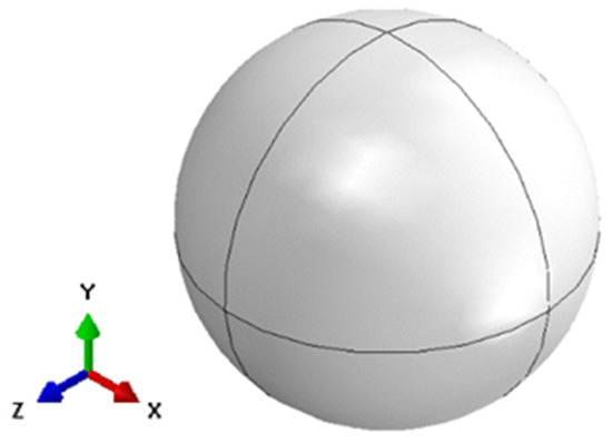 For dynamic testing, a sphere was created to act as a dynamic load cell. To develop the dynamic model, a sphere with a diameter of 300 mm was created and manually subdivided to improve ABAQUS’ automatic meshing tool. A completed sphere part is displayed below in Figure 4.