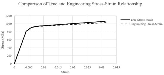 Figure 5 compares the engineering vs. true stress–strain curve of steel with a yield strength of 922 MPa and an ultimate strength of 1031 MPa, that was used to calibrate the static model.