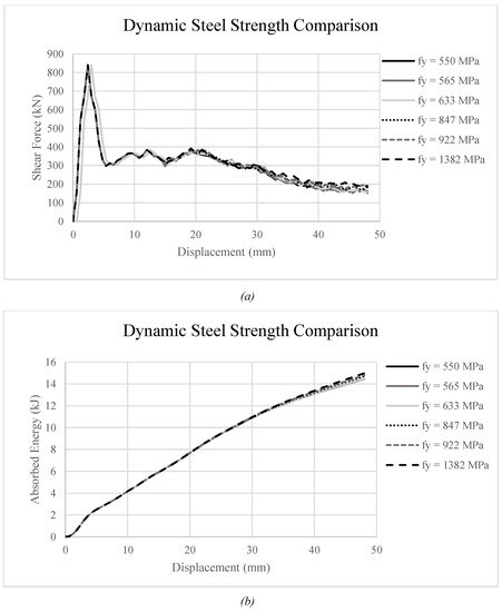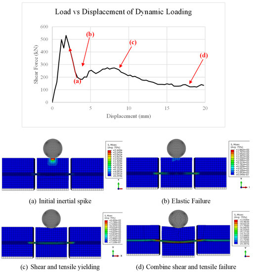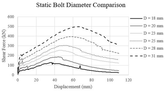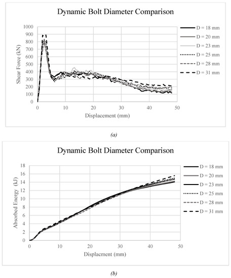 Tahmasebinia et al. (2018) [28] created a double shear test using finite element modelling and expressed the value of ABAQUS’ ability to model many complex interactions and boundary conditions. Mirzaghorbanali et al. (2017) [29] also recognised the advantages of using FEM and conducted a similar double shear test. This study will further the model by investigating the impacts of select parameters on dynamically loaded bolts, with a focus on maximum displacement, shear force and energy absorption. The analysis will examine the bolt diameter, the steel strength, the velocity of the dynamic load cell, and the mass of the dynamic load cell.