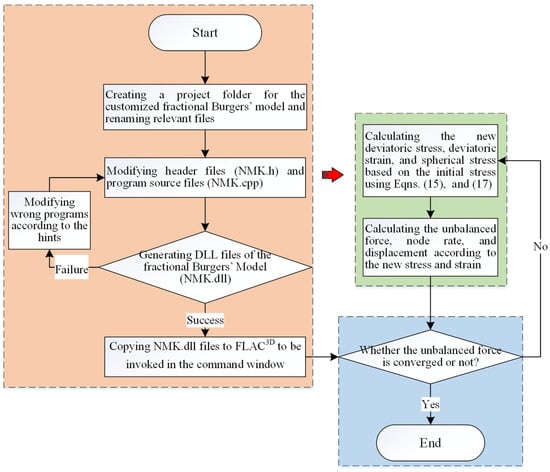 The secondary development flowchart of the fractional Burgers’ model in FLAC3D is illustrated in Figure 7.