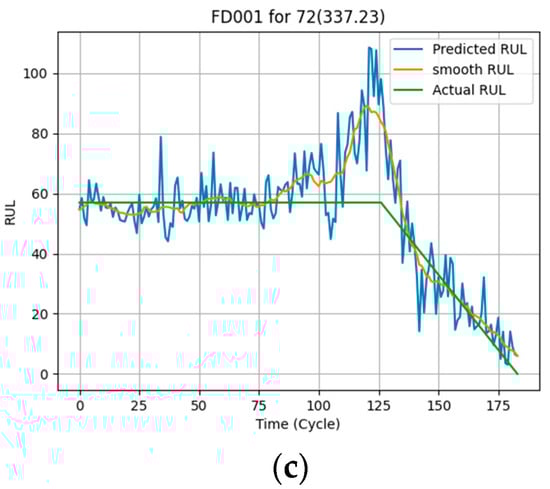 (a) Good result for FD001; (b) Poor result for FD001; (c) Average result for FD001.