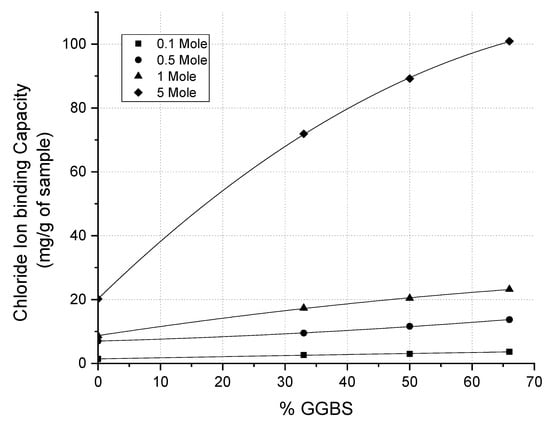 Effect of varying concentrations of chloride ions on chloride binding capacity [58].