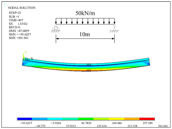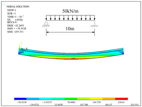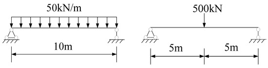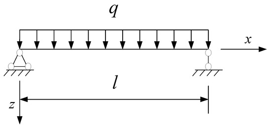 By the boundary conditions , , when , , and using Equations (44), (41), and (35), the deflection f equation of the simply-supported beam under a uniform load can be obtained as follows: