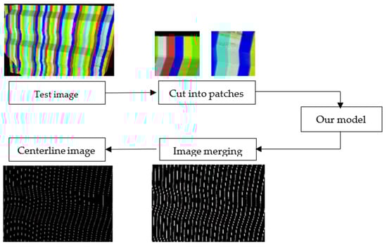 - Test images are preprocessed with a bilateral filter to reduce noise and preserve edges in the images. Similar to the images in the training set, these images are sequentially cut into patches of 128 × 128 pixels. These patches are then fed into the trained model for prediction;