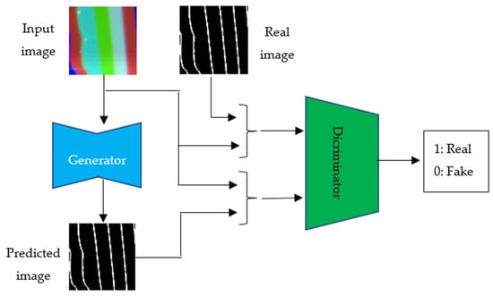 - The GAN-based model for color structured light stripe edge detection is trained with the prepared training set and pre-set parameters. With the properties of the GANs, this model can significantly reduce the effect of noise and characteristics, even colored textures, of the object surface;