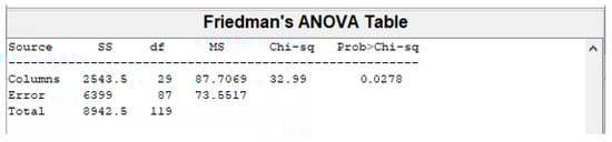 - Friedman, M.A. Comparison of Alternative Tests of Significance for the Problem of M Rankings. Ann. Math. Stat. 1940, 11, 86–92. [Google Scholar] [CrossRef]
