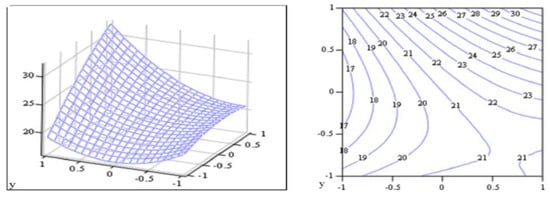 The calculations for determining the optimum values of the optimization parameters according to Equations (10)–(14) were performed using the Mathematica-5 computer software and MathCad software. The response surfaces were constructed, their appearance was determined, and two-dimensional sections were analyzed according to the variation factors [31].