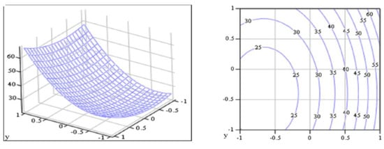 Thus, the analysis of Equations (4), (6)–(8) was performed and response surfaces for all crops were built (Figure 4, Figure 5, Figure 6, Figure 7 and Figure 8), their appearance determined and an analysis carried out by the method of two-dimensional sections, depending on the factors of variation, fixing each of them at a certain level.