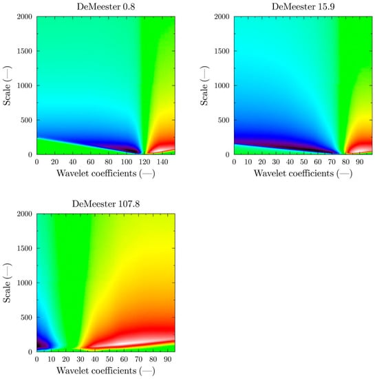 In the second step of the current pH signal assessment procedure, the CWT was applied in order to determine the necessary wavelet coefficients. In essence, the wavelet transform shows the extent of the correlation between the investigated signal and the wavelet at the given scale. The lower the similarity, the closer the values of the wavelet coefficients are to zero. Therefore, the wavelet transform makes it possible to locate low and high-frequency features in the signal by analysing variations in the wavelet coefficients.