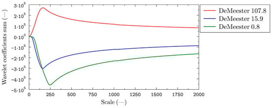 In the following step, the calculated wavelet coefficients were summed up and related to the succeeding scales in order to reveal any quantitative differences between the particular pH signals measured. Figure 6 presents the calculated curves representing the state of a selected patient.