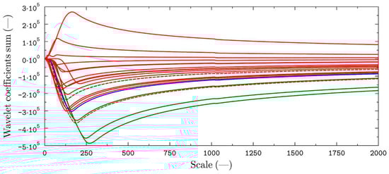 As one of the basic assumptions of the calculations carried out was to take into account both the low- and the high-frequency features of the signal, in the wavelet analysis the scale parameter was increased until the wavelet coefficients of the entire analysed signal were close to zero. Finally, the maximum scale value was set at 2000.