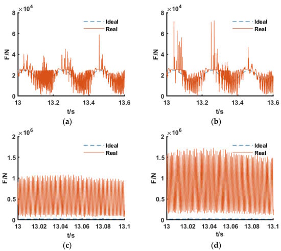 - The dynamic simulation analysis verifies that the existence of clearance leads to significant oscillations in the vibration forces, which seriously affect the service life of the foundations. A larger driving speed and a smaller clearance size can be beneficial to reduce the shock and chaos phenomenon during the operation of the mechanism, reduce the influence of the clearance on the vibration force applied to the foundation, and improve the stability of the mechanism operation.