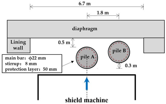 The shield tunneling method has been widely used in urban subway tunnel construction because of its advantages of safety, high efficiency, high degree of mechanization and little influence on the surrounding environment. With the rapid development of urban subway construction and the increasing density of the subway network, it is common for newly built shield tunnels to encounter the pile foundation of the existing structures [1,2,3,4]. When reinforced concrete piles foundation directly intrudes into the tunnel boundary, it causes great difficulties in tunnel construction. Generally, traditional methods such as demolishing the original building (structure), pulling out piles from the ground and digging piles after excavating the shaft are used to remove the pile in advance. Although these methods are relatively safe and mature, they also have disadvantages, such as large impacts on the surrounding environment, high cost and long construction period [5,6,7,8].