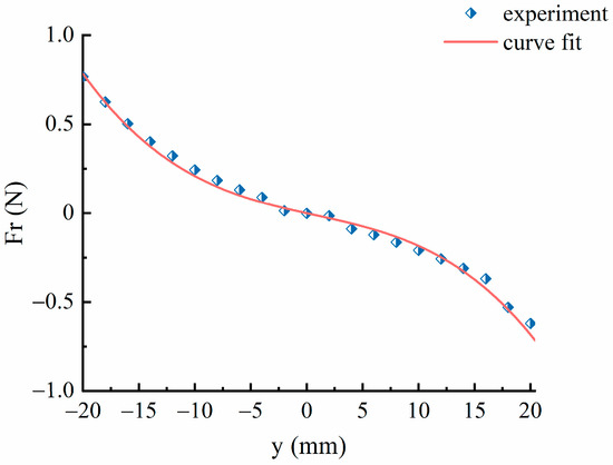 This paper uses the dynamometer YLK-10 to measure the restoring force at the end of the composite beam. After fitting the experimental data, the restoring force model diagram of the composite beam, as shown in Figure 2, is obtained. It can be seen from Figure 2 that the structural restoring force F r of the composite beam and its end displacement y show a nonlinear relationship, which is caused by the existence of an arched structure in the composite beam.