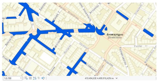 Recycling bin coverage for a particular region in the city of Thessaloniki.