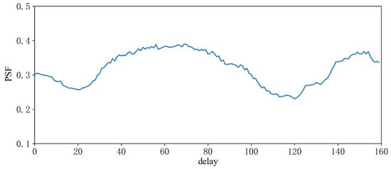 In the brain network, the is affected not only by the phase shift of the stimulus, but also by the time delay. Therefore, this study considers the transmission delay between transmission paths and describes the effect of delay on the . The simulation is shown in Figure 4.