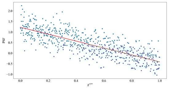 In addition to the number of central nodes, the synaptic strength of node pairs also plays an important role in synchronization characteristics. By obtaining the values at different synaptic strengths , it can be found that there is a close relationship between the effective link between stimulated nodes and the synaptic strength. By fitting the data, there is a high degree of coherence between the values at different strengths and different nodes. In addition, it can be seen by the simulation results in Figure 13 that as the synaptic strength increases, value becomes smaller and smaller, which indicates that when the coupling strength between the nodes gradually increases, resulting in a strong structural link between the nodes, it is more difficult to regulate the synchronization between the nodes using the phase information of the stimulus information. This indicates that there should be a general weak coupling phenomenon between the nodes of the brain network.