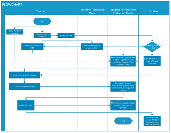 The translation course is designed to help students to more easily complete the transition from “language” to “translation” and pay attention to the quality of translation. To achieve this purpose, we designed the system workflow as shown in Figure 2.