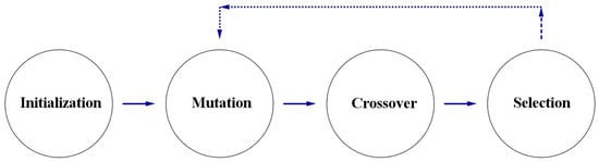 To tackle this optimization problem, we will use a Differential Evolution type search method. The usual stages of a DE search algorithm is shown in the following Figure 2.